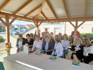 Swoja obecnością zaszczycili nas: Wójt Gminy Rachanie – Pan Roman Miedziak, wiceprzewodnicząca Rady Powiatu – Pani Teresa Semczyszyn, dyrektor Banku Spółdzielczego w Tomaszowie Lubelskim oddz. w Rachaniach – Pani Marzena Łoza, dyrektor SP w Rachaniach – Pani Katarzyna Bondyra, kierownik GOPS Rachanie  – Pani Urszula Wlaź, sołtys wsi Rachanie – Pani Iwona Seńko, Radna Gminy – Pani Agnieszka Maścibroda, przewodnicząca KGW Rachanie – Pani Stanisława Pasieczna, oraz Pani Katarzyna Seńko.  We wspólnym czytaniu aktywny udział wzięli również uczniowie klasy VIII Szkoły Podstawowej w Rachaniach pod kierunkiem Pani Bożeny Krawczyk.