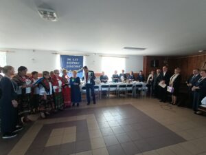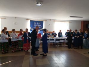 Podczas uroczystości miało miejsce przypomnienie historii powstania zespołu, odczytane przez wieloletnią członkinię Panią Stanisławę Fuk, przemówienia przybyłych gości, a także refleksje i chwile wzruszeń związane z wieloletnią działalnością chóru. Serdeczne podziękowania za zaangażowanie i współpracę otrzymał instruktor chóru Pan Stanisław Seńko.