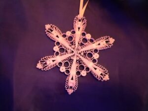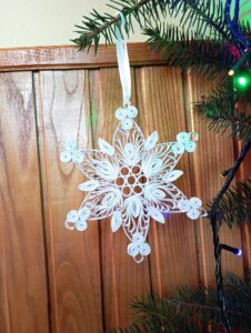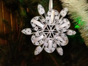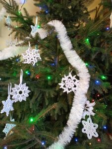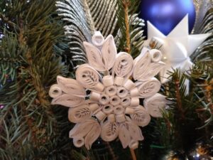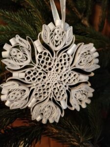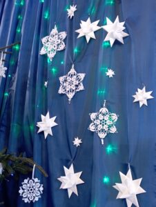 W styczniu br. pracownicy Gminnego Ośrodka Kultury w Rachaniach zostali zaproszeni do obejrzenia Bożonarodzeniowej dekoracji kaplicy w Siemnicach. Przepiękny wystrój olśniewał już od progu. Widać kunszt i precyzję wykonanych ozdób. Wszystko zaczęło się 4 lata temu od 80 gwiazdek wykonanych przez Panią Jadwigę Wronkę. Z roku na rok ich ilość się zwiększała, dziś jest ich już 150. Pani Jadzia jest niezwykle pozytywną i pogodną osobą to pewnie dzięki swojemu charakterowi zjednuje sobie ludzi i zaraża optymizmem. Cierpliwie demonstruje jak wykonywać ozdoby co sprawiło, że nie zabrakło pomocnych dłoni trzech mieszkanek Siemnic w wykonywaniu ozdób.