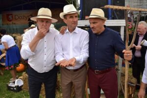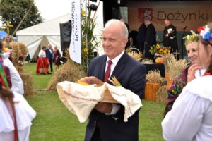 Powiatowe Dożynki 2023 zorganizowane zostały w naszej gminie 3 września w Wożuczynie Cukrowni. Pomimo początkowo niesprzątającej pogody, przy rozbrzmiewających dźwiękach marsza korowód dożynkowy na czele z pocztami sztandarowymi przeszedł przez taflę stadionu. Przemarsz delegacji prowadzili Starostowie Dożynek – Pani Joanna Sławińska z Wasylowa gmina Telatyn i Pan Bartłomiej Panasiński z Rachań, władze starostwa powiatowego na czele ze Starostą tomaszowskim Panem Henrykiem Karwanem, Wicestarostą Panem Jarosławem Korzeniem, Wiceprzewodniczącą Rady Powiatu Panią Teresą Semczyszyn, władzami lokalnymi- Wójtem Gminy Rachanie Panem Romanem Miedziakiem, Przewodniczącym Rady Gminy Rachanie Panem Wiesławem Pałczyńskim. W korowodzie uczestniczyli również burmistrzowie miast