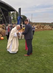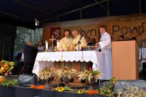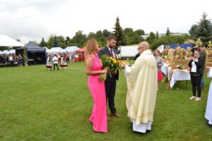 Kolejnym punktem dożynek było przekazanie chlebów przez wszystkie delegacje na ręce starosty tomaszowskiego, który następnie przekazał chleb na ręce dziekana Dekanatu Tomaszów Lubelski Południe ks. dr Jarosława Przytuły oraz proboszcza Parafii Wożuczyn ks. Bogdana Jaworowskiego i w imieniu rolników oraz wszystkich dożynkowych gości poprosił o odprawienie mszy świętej i błogosławieństwo.