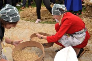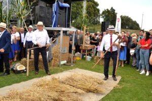 Po Mszy Świętej zgodnie ze staropolskim obyczajem nastąpił ceremoniał dzielenia chlebem. Starostowie dożynek, władze powiatu tomaszowskiego i Gminy Rachanie. Wraz z chlebem roznoszone było mleko oraz miód od miejscowych gospodarzy.