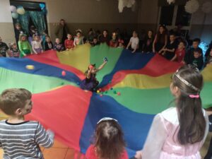 W tym roku po raz drugi Gminny Ośrodek Kultury zorganizował dla najmłodszych mieszkańców Gminy Rachanie FERIE BEZ KOMPUTERA. Podczas wspólnie spędzonych dni dzieci nie miały czasu się nudzić czekały na nie zajęcia plastyczne, ruchowe, umysłowe i kulinarne. Wspólny wyjazd dzieci i młodzieży do parku trampolin FORT JUMP w Zamościu również cieszył się ogromnym zainteresowaniem, a radości z zabawy nie było końca. Ferie zakończone zostały Balem Karnawałowy, na którym Panie animatorki z Art-sport Animacje przebrane w kotki i czarownicę fantastycznie poprowadziły różnorodne gry, zabawy i tańce dla dzieci. Podczas wspólnej zabawy wybrany został najpiękniejszy strój, a co najważniejsze Królowa i Król Balu, zwycięscy otrzymali upominki.